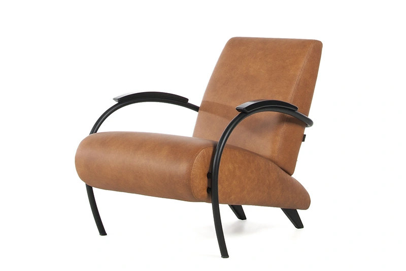 Deze fauteuil van Gelderland is het kleinere zusje van de 5770 F fauteuil, met een iets lagere rug. De rugleuning is wat gekanteld, waardoor u lekker kunt lounge. De armleuning loopt aan de achterkant van de rug door wat de fauteuil een speels twist geeft. Voor optimaal comfort is er een bijpassende hocker verkrijgbaar.