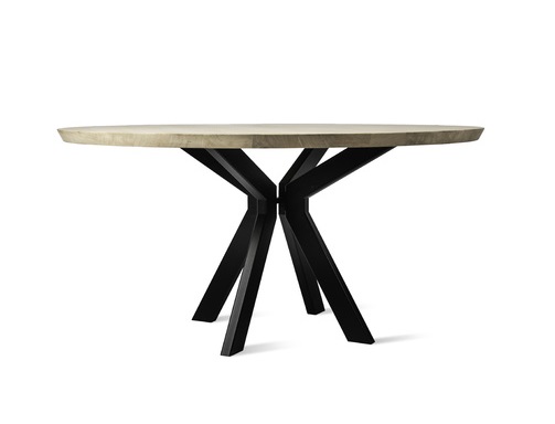 Ronde eetkamertafel met massief eikenhout blad op metalen frame.