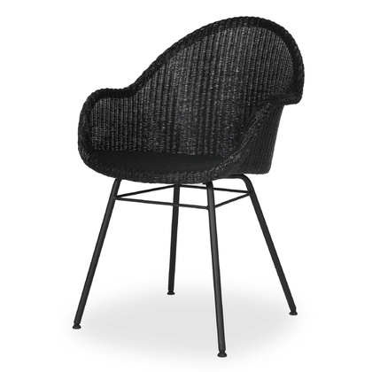 Eetkamerstoel met Lloyd Loom zitje op metalen poten.
