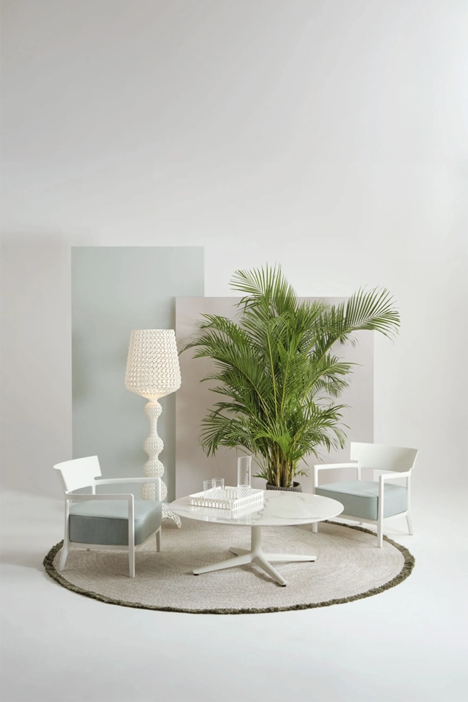 De Cara fauteuil van Kartell maakt deel uit van een serie producten van Philippe Starck waarmee hij zich wijdt aan het concept “less is more”. De zeer innovatieve fauteuil combineert minimalistische lijnen met een weelderig zitkussen, waardoor de zitting er zowel klassiek als modern uitziet.