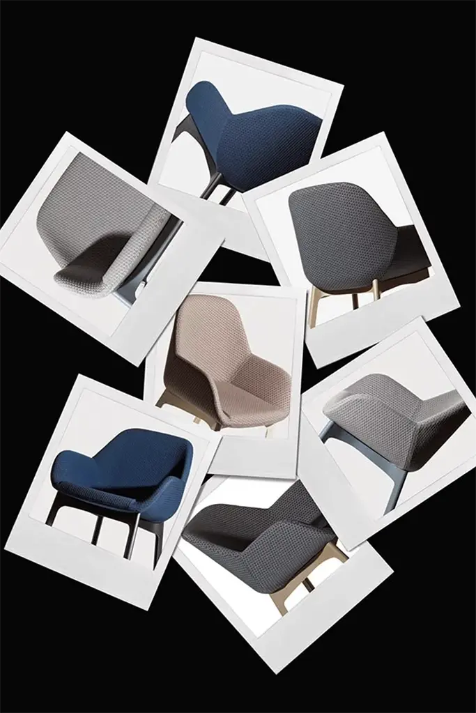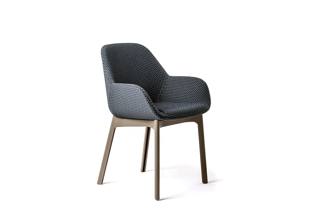 De Clap is beschikbaar in acht kleurencombinaties en wordt gekenmerkt door enerzijds een zitting met een elegante en functionele stof met zeshoeken, geschikt voor alle mogelijke gebruiken. Anderzijds door een uiterst stevige plastieken structuur, het resultaat van de meest recente industriële technologie.