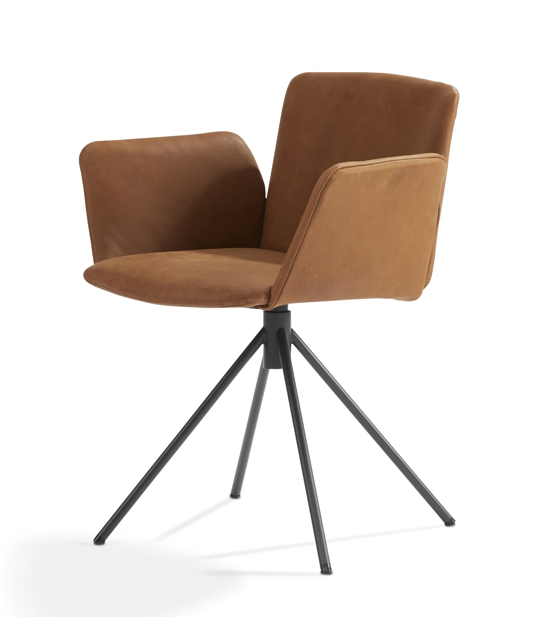 Eetkamerstoel met armleuningen zonder loop op spinpoot.