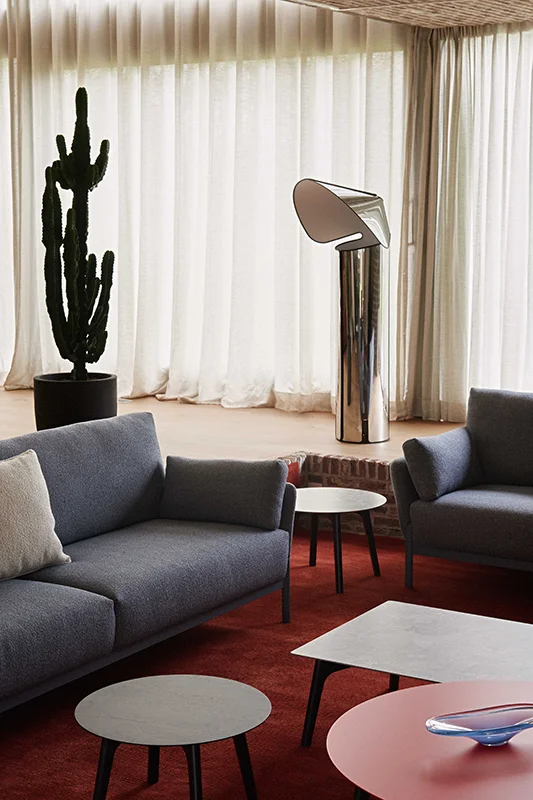De Enna 3 zitsbank is een ontwerp van Hanne Willmann voor Leolux. Zij staat bekend om transparant, bescheiden en eerlijk design. In 2015 werd zij uitgeroepen tot Design Talent of the Year.