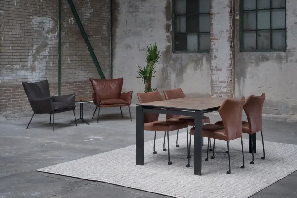 Materiaal: In leer Toledo of Apollo/ poten zwart epoxy