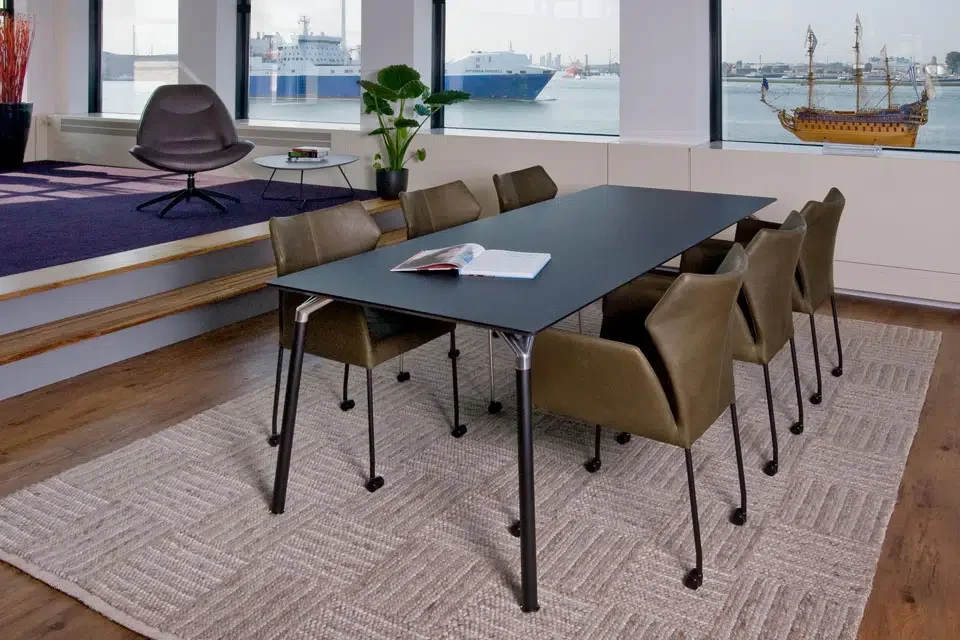 Fly eetkamerstoel op wieltjes en Shape eettafel