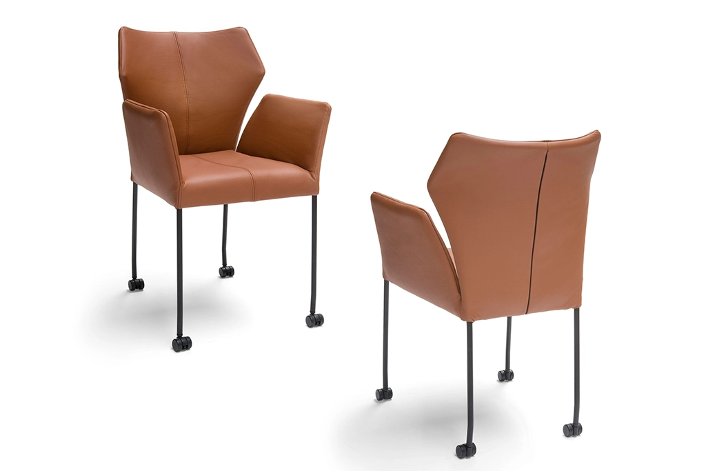 De Fly eetkamerstoel met armleuningen is ook zonder armleuningen en parketwielen verkrijgbaar!