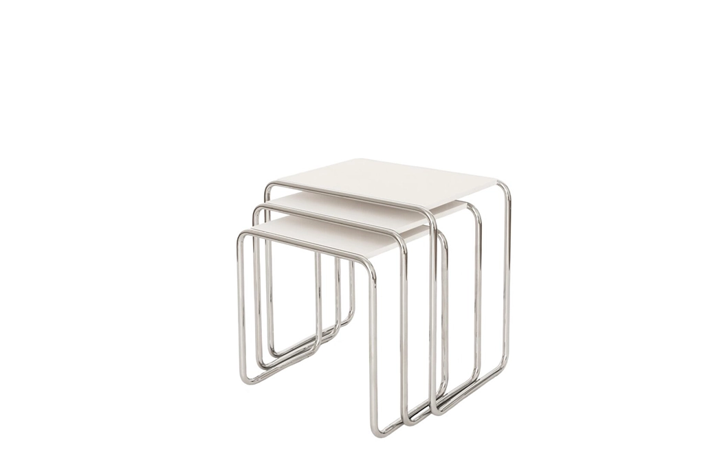 Deze stijlvolle Dutch Originals Gispen Mimiset, bestaat uit 3 bijzettafeltjes met verschillende afmetingen en past uitstekend in zowel moderne als klassieke interieurs. Het buizenframe van de Gispen Mimi set is zo gebogen dat de tafeltjes eenvoudig onder elkaar te schuiven zijn. Doordat de bijzettafeltjes licht van gewicht zijn, kunt u zelf bepalen hoeveel en waar u deze wil plaatsen.