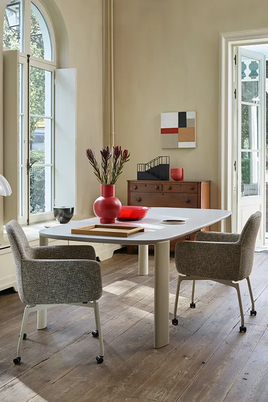De Gyon eetkamerstoelen zijn mooi te combineren met de Tico eetkamertafel, ook van Leolux.