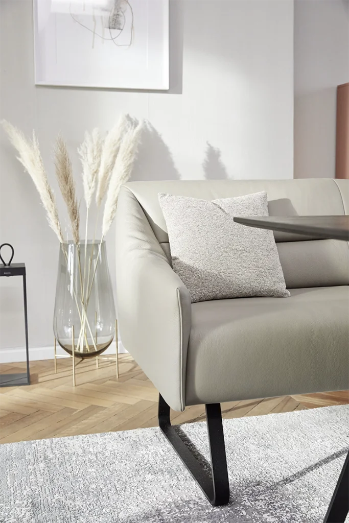 Daar wil Musterring echter verandering in brengen. In samenwerking met Bettina Zimmermann is er een eetbank ontwikkeld, die u overtuigt door zijn moderne uitstraling en comfortabele stoffering.