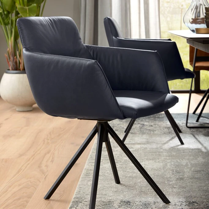 Eetkamerstoel met armleuningen op statiefonderstel.