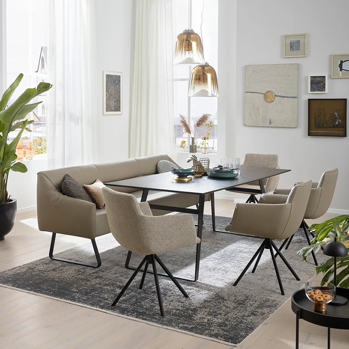 Integendeel: De JustB!- SP500 serie uit de JustB!-serie van Musterring is het beste bewijs dat de combinatie van hoogwaardige stoffen en stabiele frames uw eetkamer een geheel nieuwe charme kan geven. Want een goed ontwerp maakt het verschil!