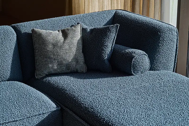 Loya legt contact met de grond via een gestoffeerde plint. Dit is net wat verder teruggeplaatst dan de zitting en bovendien uitvoerbaar in een afwijkend materiaal ten opzichte van de rest van de bank. Zo geeft u een heel eigen twist aan uw Loya bank.