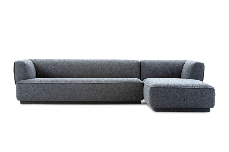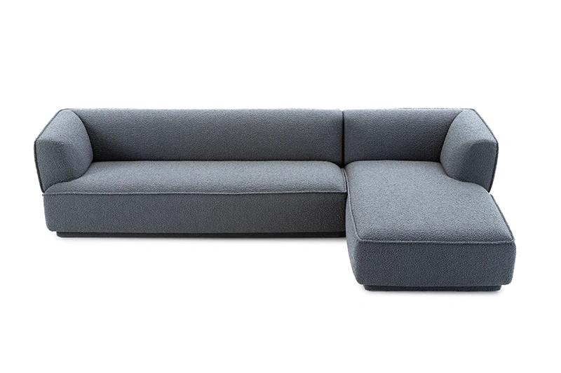 Loya legt contact met de grond via een gestoffeerde plint. Dit is net wat verder teruggeplaatst dan de zitting en bovendien uitvoerbaar in een afwijkend materiaal ten opzichte van de rest van de bank. Zo geeft u een heel eigen twist aan uw Loya bank.