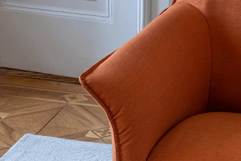 Met zijn speelse vormen is de Mayuro een fijne fauteuil om naar te kijken. De vormen van de Mayon bank zijn het uitgangspunt, maar Mayuro is compacter in zijn afmetingen.