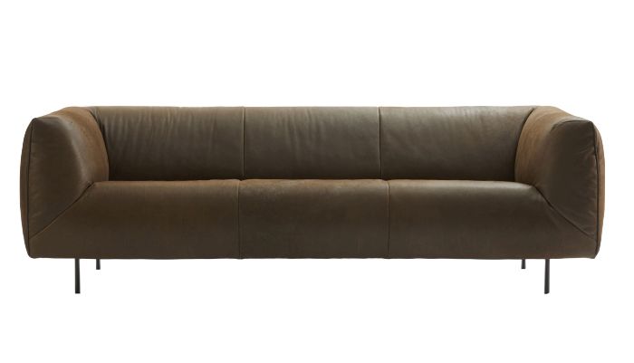 De nadruk wordt hier juist op de dikke taps toelopende armleuningen van de Moby Dick zitbank gelegd met zijn mooie stiknaden.