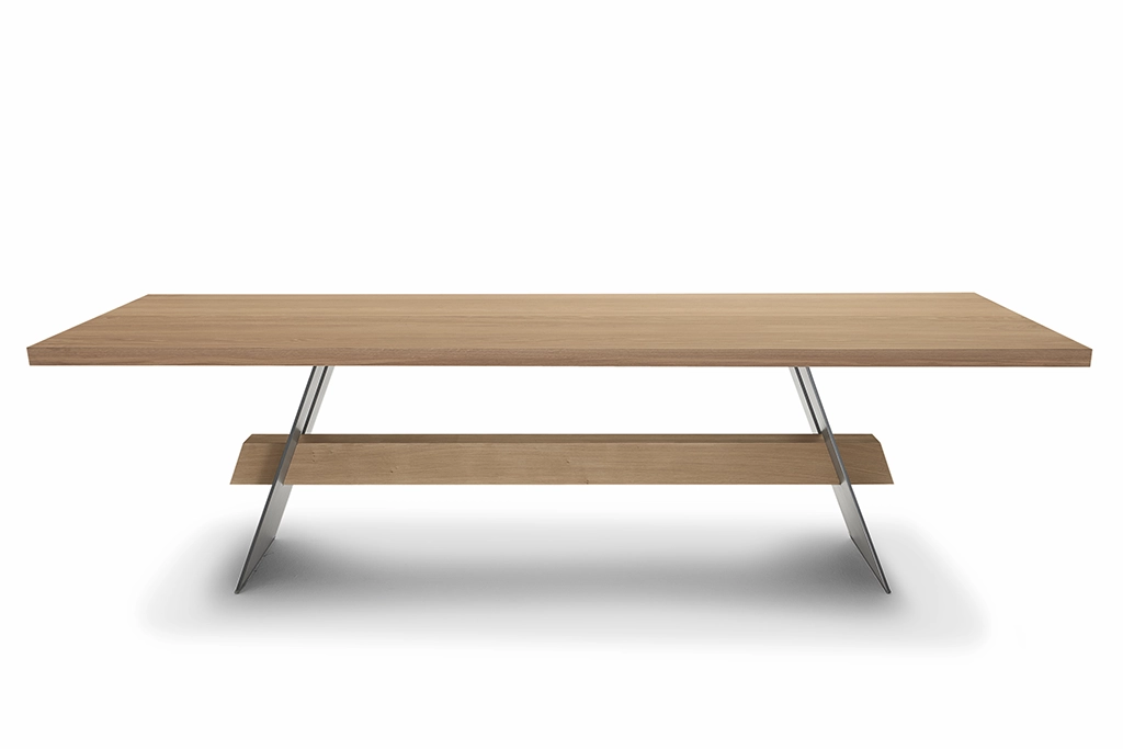 Deze eetkamertafel is geheel naar eigen wens in te vullen. U kunt kiezen uit een aantal maten en de tafelbladen zijn verkrijgbaar in verschillende houtsoorten. De houten tafelbladen kunt u laten lakken of beitsen. De markante metalen wangen zijn er in meerdere lakkleuren en zo kunt u deze mooi afstemmen op het tafelblad.