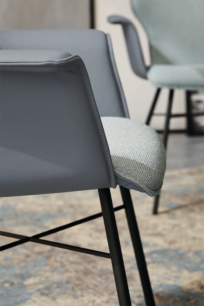 Doordat de Nevio eetkamerstoelen van Musterring zeer veelzijdig zijn kunt u bijvoorbeeld een statement maken door verschillende onderstellen om de eetkamertafel te zetten. Pas de lakkleur van het onderstel aan in combinatie met de bekleding en voilà… zo creëert u uw persoonlijke eetkamerstoel!