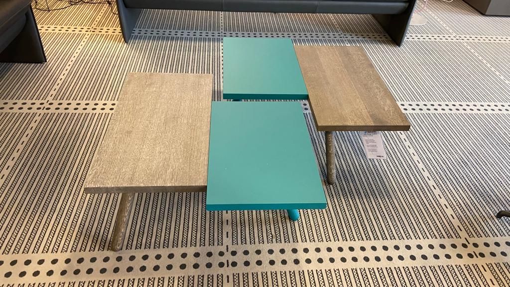 De tafeltjes zijn in verschillende opties tegen elkaar te plaatsen.