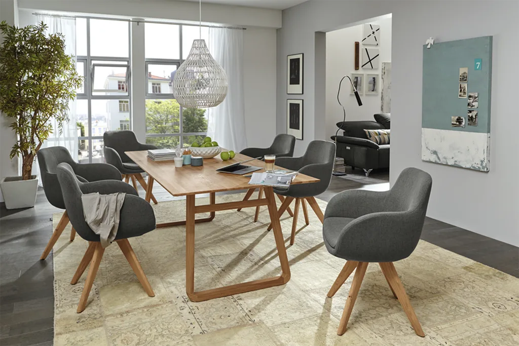 Handen op tafel, langzaam kauwen en rechtop zitten: zelfs grootmoeder wist wat een echte eetcultuur inhield. Maar soms wilt u gewoon loslaten en ontspannen na het samen eten, comfort in plaats van etiquette. En om u bijzonder comfortabel te voelen, moet u vertrouwen op de gezellige Tavia eetkamerstoelen serie van Musterring.