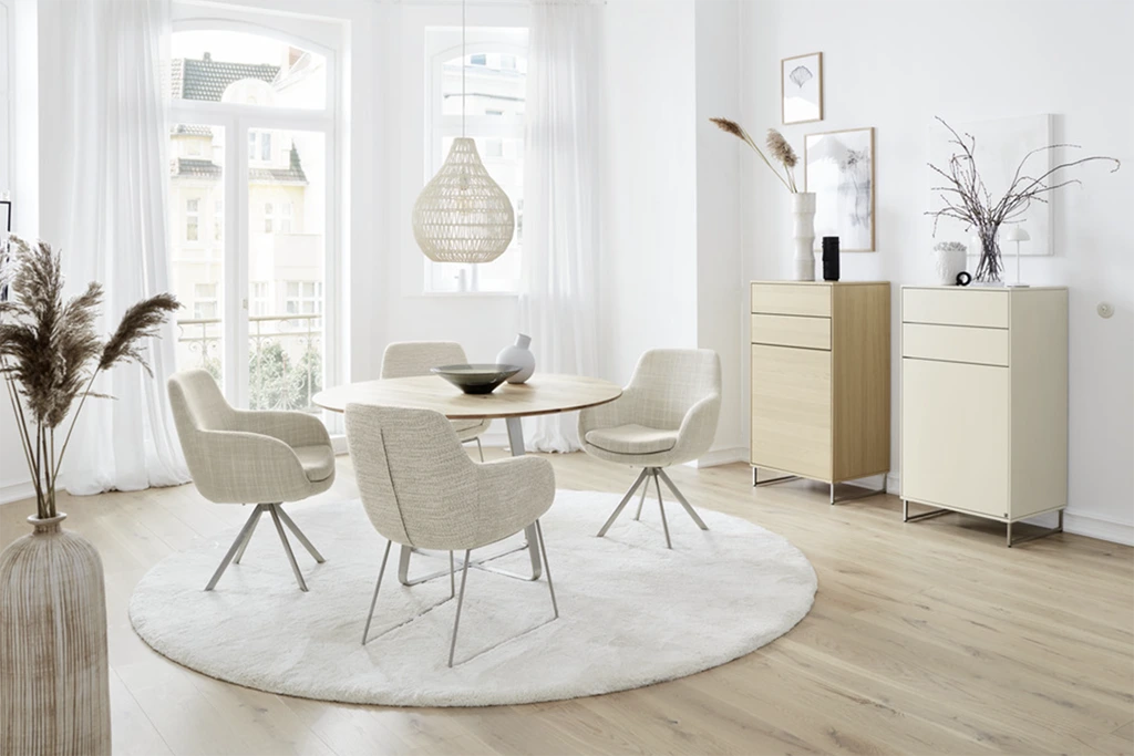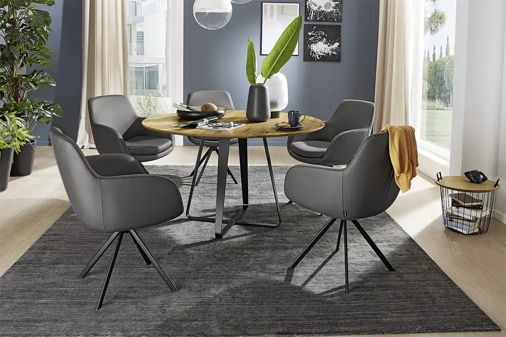 Handen op tafel, langzaam kauwen en rechtop zitten: zelfs grootmoeder wist wat een echte eetcultuur inhield. Maar soms wilt u gewoon loslaten en ontspannen na het samen eten, comfort in plaats van etiquette. En om u bijzonder comfortabel te voelen, moet u vertrouwen op de gezellige Tavia eetkamerstoelen serie van Musterring.