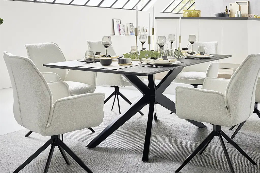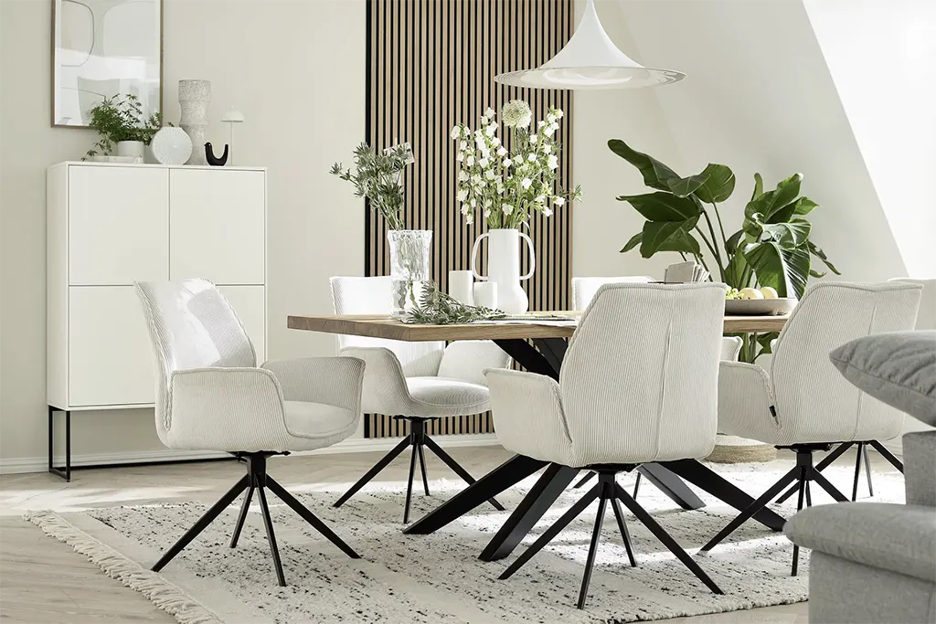 Zo staat de Tiama draaibare eetkamerstoel met armleuningen altijd netjes rond uw eetkamertafel!