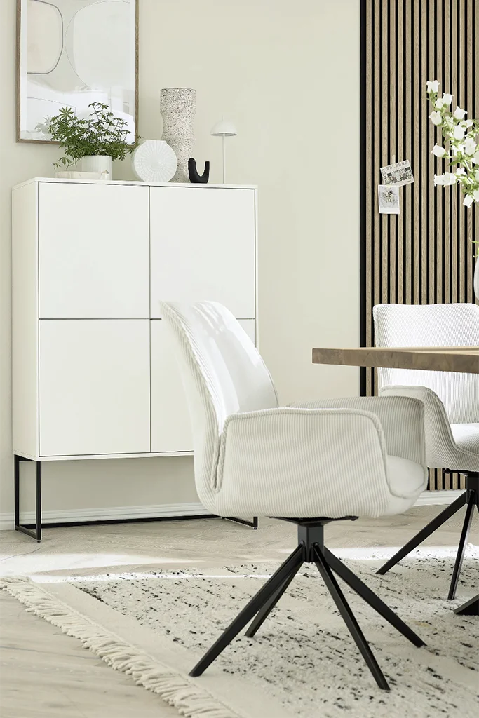 De Tiama draaibare eetkamerstoel met armleuningen van het merk Musterring heeft de perfecte balans tussen comfort en verfijning gevonden. Met zijn eigentijdse ontwerp en uitnodigende zitting is deze eetkamerstoel een functionele en elegante toevoeging aan iedere ruimte. Met de Tiama kunt u urenlang dineren en gezellig samenzijn.