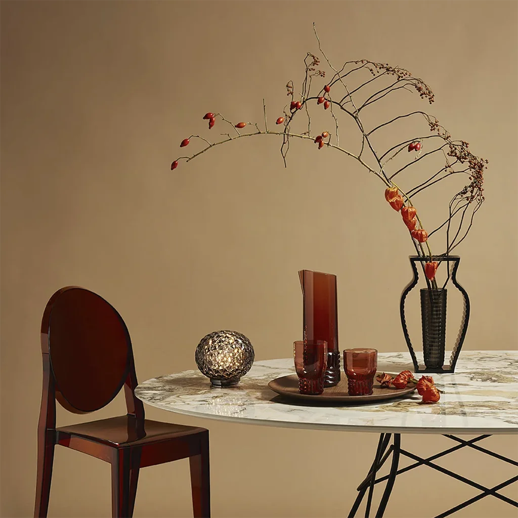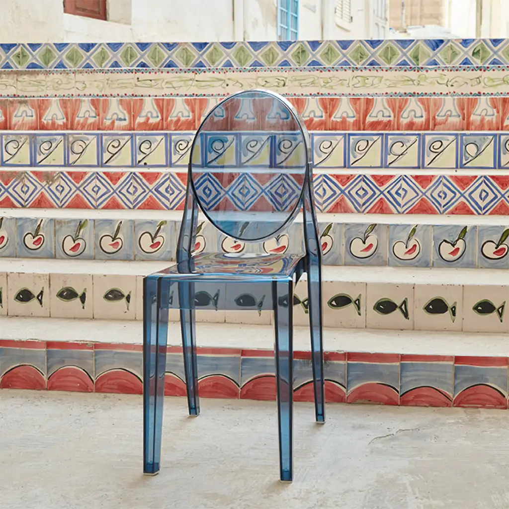 Met de Victoria Ghost Chair heeft Kartell een comfortabele zitting gecreëerd, die er net zo goed uitziet in de tuin als in de eetkamer en opvalt door zijn klassieke design en uitzonderlijk materiaal.